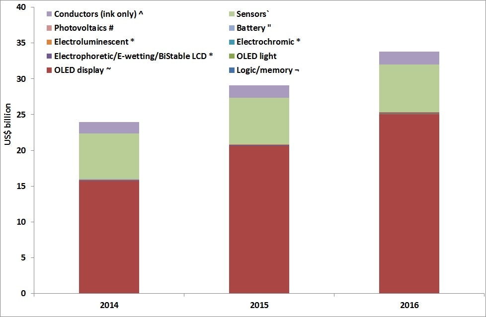 | 1.2. | Market forecast by component type for 2014-2024 in US $ billions, for printed and potentially printed electronics including organic, inorganic and composites |
