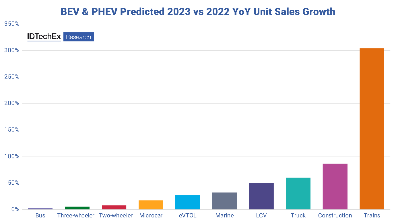 Alle Kategorien außerhalb des Automobils werden ebenfalls rasch elektrifiziert. Quelle: IDTechEx