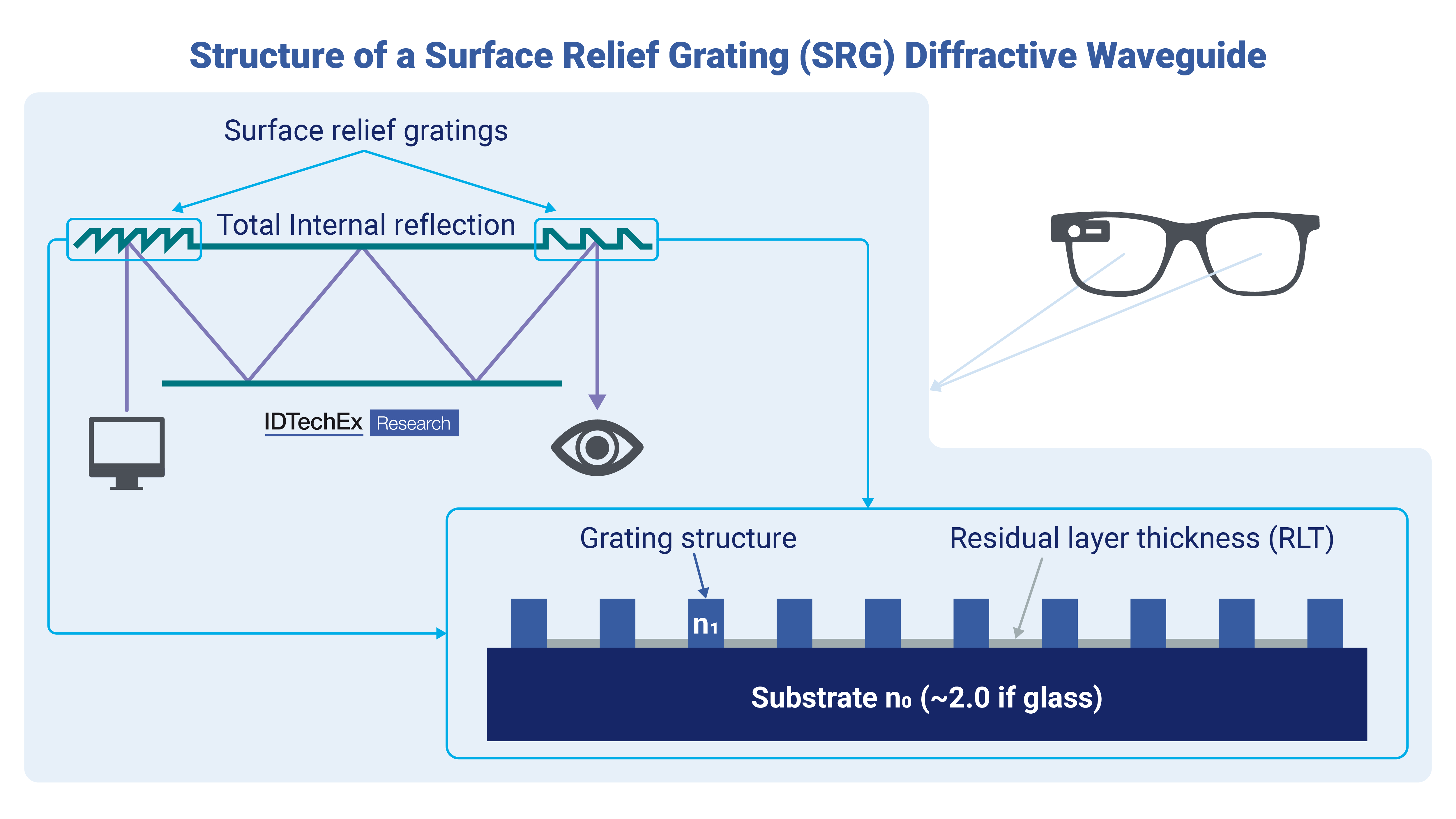 Diagram of a Surface Relief Grating (SRG) waveguide. Source: IDTechEx.