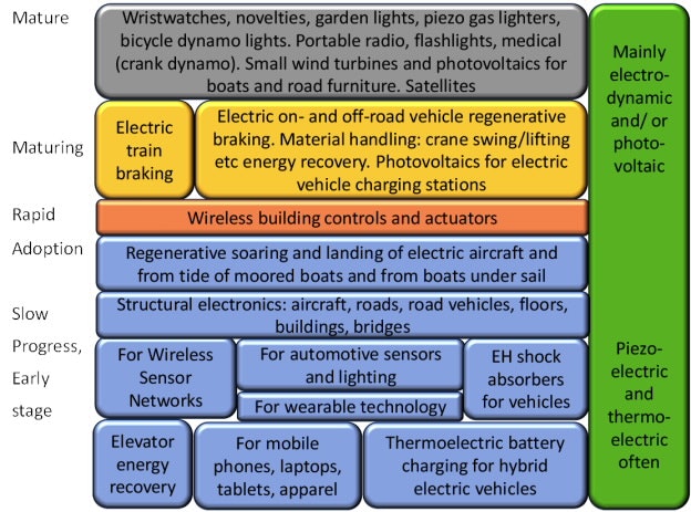 Energy harvesting, early stage technologies to mature market products