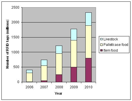The following table gives the global RFID market specifically for food and livestock 2006-2010.