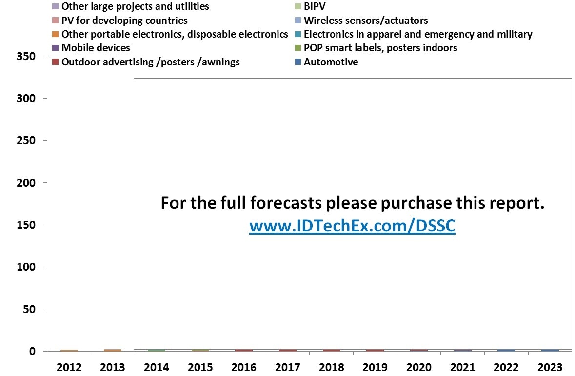 | 6.1. | Table of forecasts for growth of DSSCs in different market segments (in $ million) |