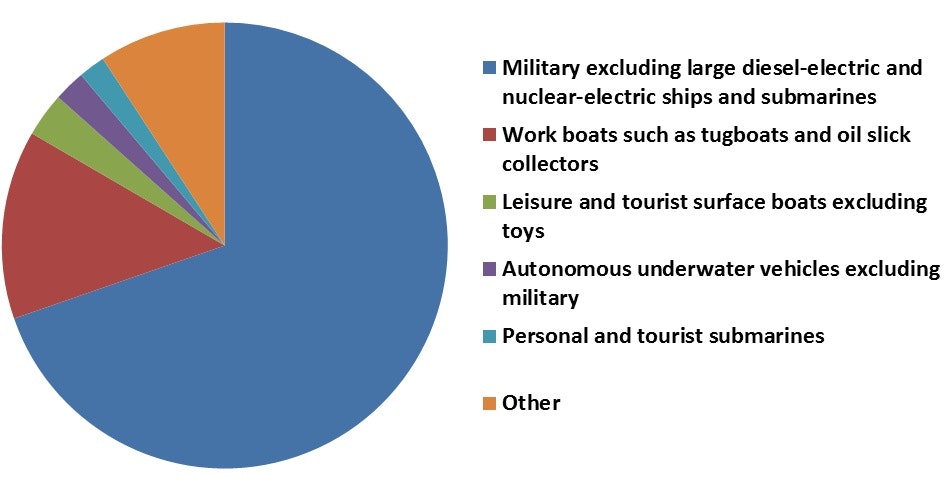 Marine electric vehicle market US$ billion in 2014 by applicational sector*