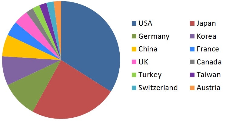 | 7.11. | Global hybrid vehicle market by country % 2007 |