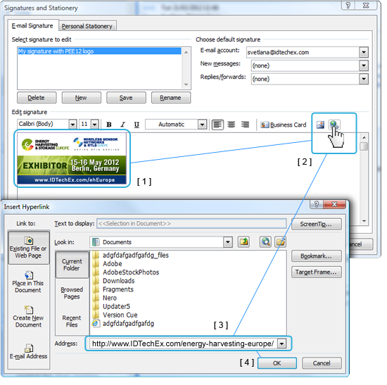 How to save and load the conference logo onto your signature using outlook