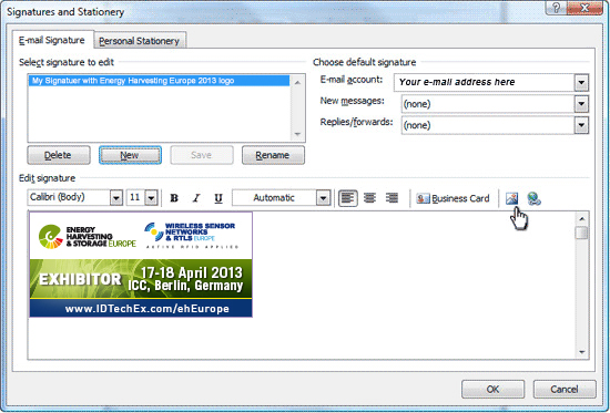 How to save and load the conference logo onto your signature using Microsoft Outlook