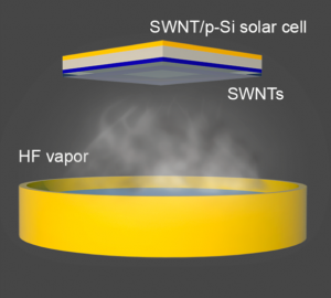 Scientists have developed a novel method for dramatically improving the efficiency of electronics made from single-walled carbon nanotubes that have been "doped," a chemical process that optimizes their properties.