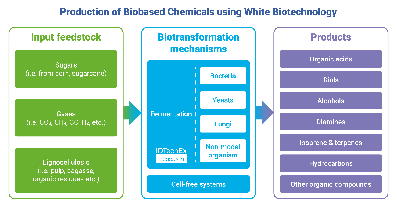 Production of biobased chemicals using white biotechnology. Source: IDTechEx