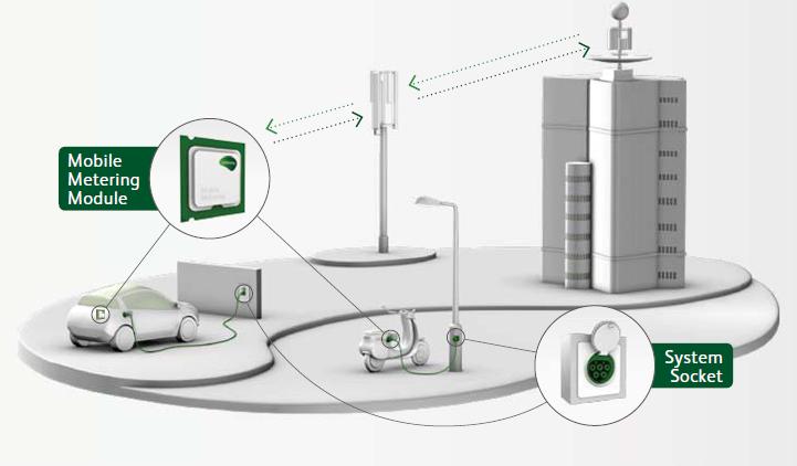 The ubitricity Mobile Metering concept rethinks infrastructure solutions for electric vehicles and will revolutionize EV charging. Rather than installing metering and communication technology inside every single charging point, metering and billing is processed by electronics inside the car or the charging cable. Charging points are reduced to simple and highly cost-efficient system sockets that can be installed easily and enable users to charge power from renewable energies wherever they chose to park their EV - at home, at work or in other private or public parking spaces.