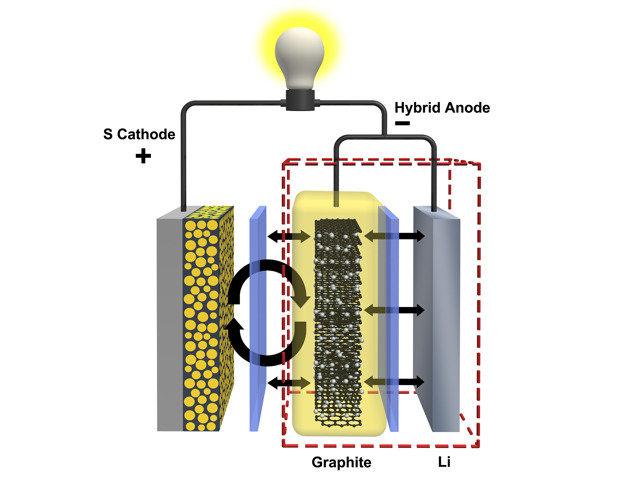 A "hybrid" anode developed at the Department of Energy's Pacific Northwest National Laboratory could quadruple the life of lithium-sulfur batteries.