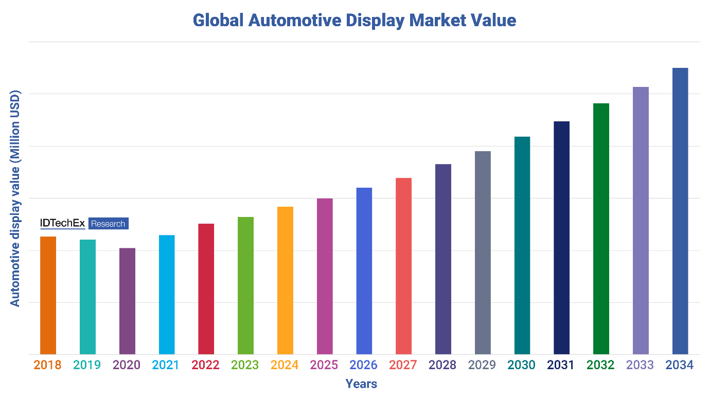 今後10年間は、ディスプレイの種類や技術革新が予想されています。IDTechExの調査レポート『車載ディスプレイ 2024-2034年: 技術、有力企業、ビジネスチャンス』は、こうした動向に関する包括的な分析を提供しています。自動車の自律性の高まりに伴い、同市場は2034年までに270億米ドルを超えると予測されています。