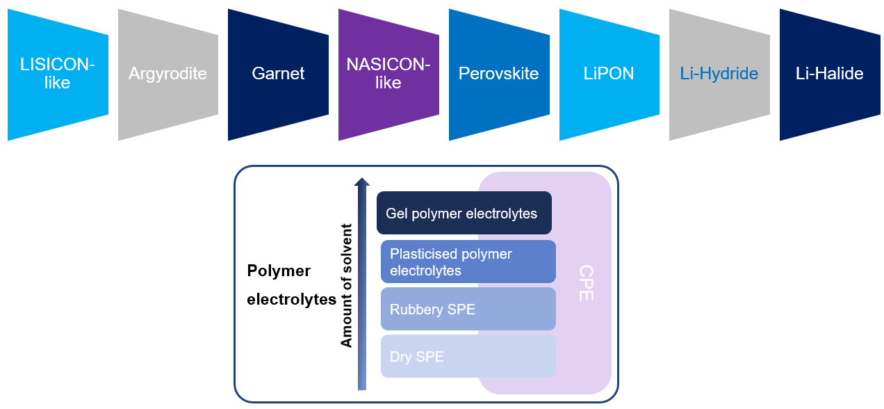 24M, Applied Materials, BatScap (Bolloré Group) / Bathium, Beijing Easpring Material Technology, BMW, BrighVolt, BYD, CATL, Cenat, CEA Tech, China Aviation Lithium Battery, Coslight, Cymbet, EMPA, Enovate Motors, FDK, Fisker Inc., Flashcharge Batteries, Fraunhofer Batterien, Front Edge Technology, Ganfeng Lithium, Giessen University, Guangzhou Great Power, Guoxuan High-Tech Power Energy, Hitachi Zosen, Hyundai, Ilika, IMEC, Infinite Power Solutions, Institute of Chemistry Chinese Academy of Sciences, Ionic Materials, ITEN, Jiawei Long powers Solid-State Storage Tecnology RuGao City Co.,Ltd, JiaWei Renewable Energy, Johnson Battery Technologies, Kalptree Energy, Magnis Energy Technologies, Mitsui Metal, Murata, National Battery, National Interstellar Solid State Lithium Electricity Technology, NGK/NTK, Ningbo Institute of Materials Technology & Engineering, CAS, Oak Ridge Energy Technologies, Ohara, Panasonic, Planar Energy, Polyplus, Prieto Battery, ProLogium, Qing Tao Energy Development Co., QuantumScape, Sakti 3, Samsung SDI, Schott AG, SEEO, Solidenergy, Solid Power, Solvay, Sony, STMicroelectronics, Taiyo Yuden, TDK, Tianqi Lithium, Toshiba, Toyota, ULVAC, University of Münster, Volkswagen, Wanxian A123 Systems, WeLion New Energy Technology, Zhongtian Technology.