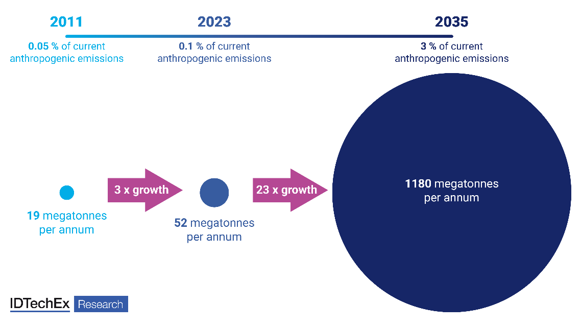 主要セクター点源炭素回収能力の2035年までの成長予測。出典:IDTechEx