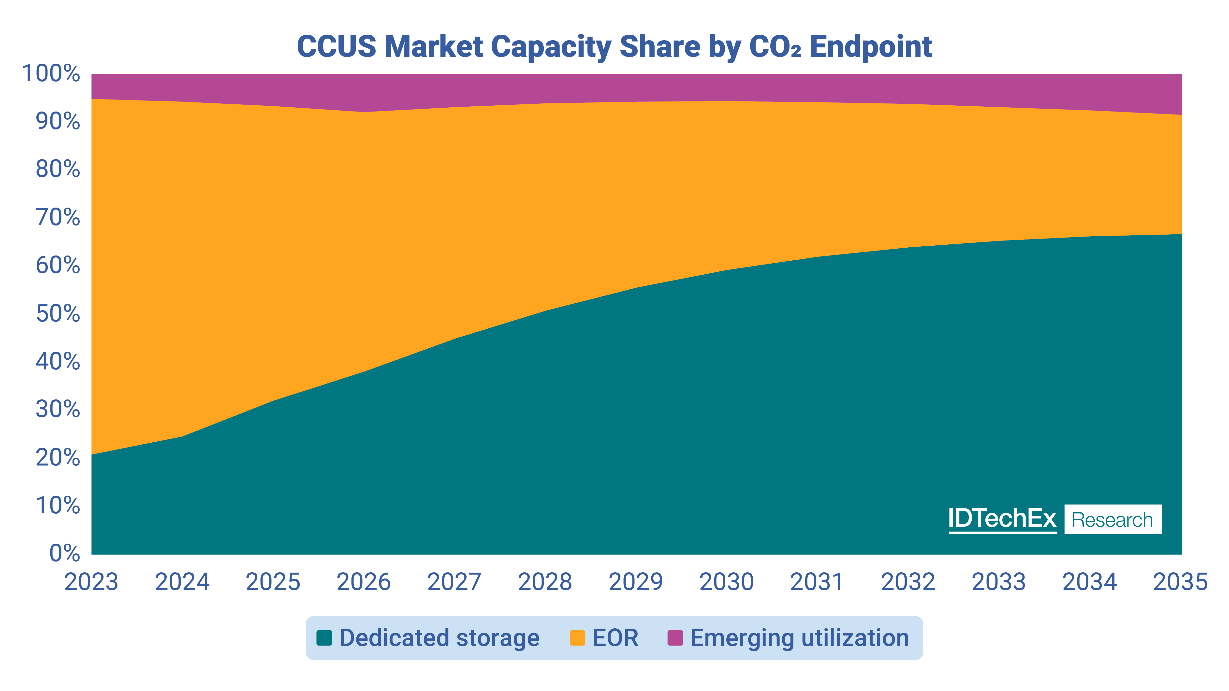 CO2エンドポイント別のCCUS市場容量シェア 出典: IDTechEx