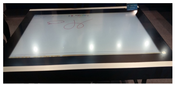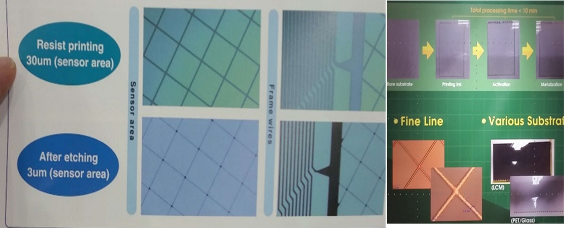 Large-area touch tables with screen printed metal mesh with 24um linewidths. Source: Gunze. I took this picture at C-Touch Taiwan 2016