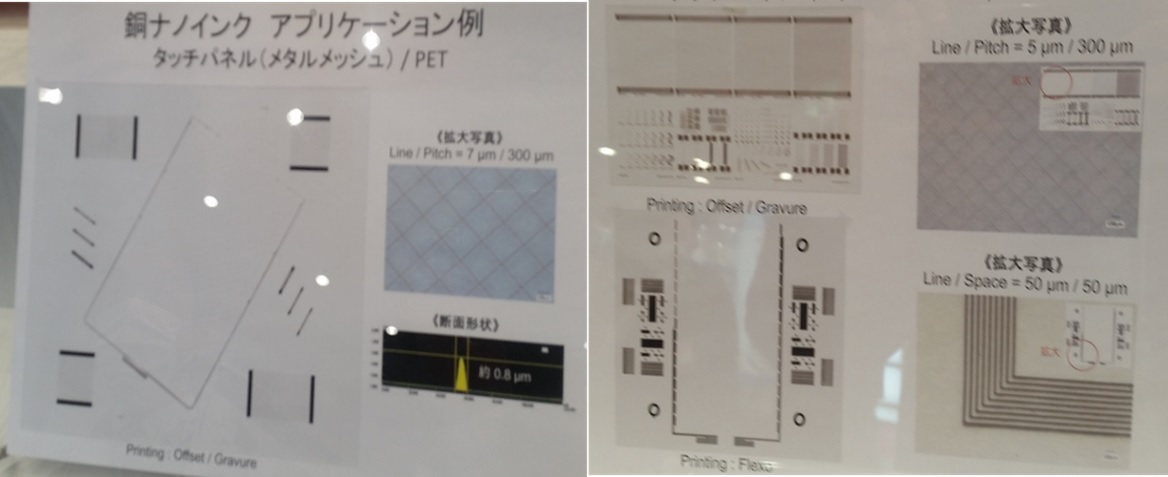 Tanaka Metal and AIST's silver nanoparticle ink-based approach to metal mesh TCFs. Source: Tanaka Metal. I took this photo based on brochures given to us by the developers.