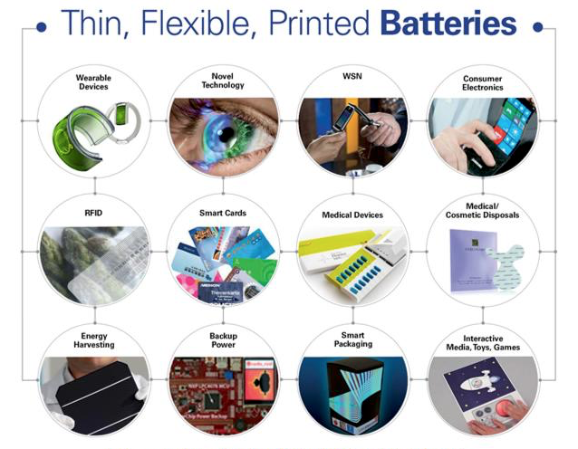 Various targeting applications of thin, flexible and printed batteries. Source: IDTechEx