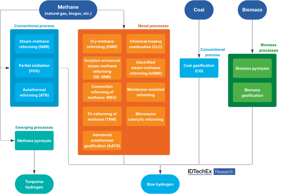 Blue hydrogen production technologies covered by IDTechEx in this report.