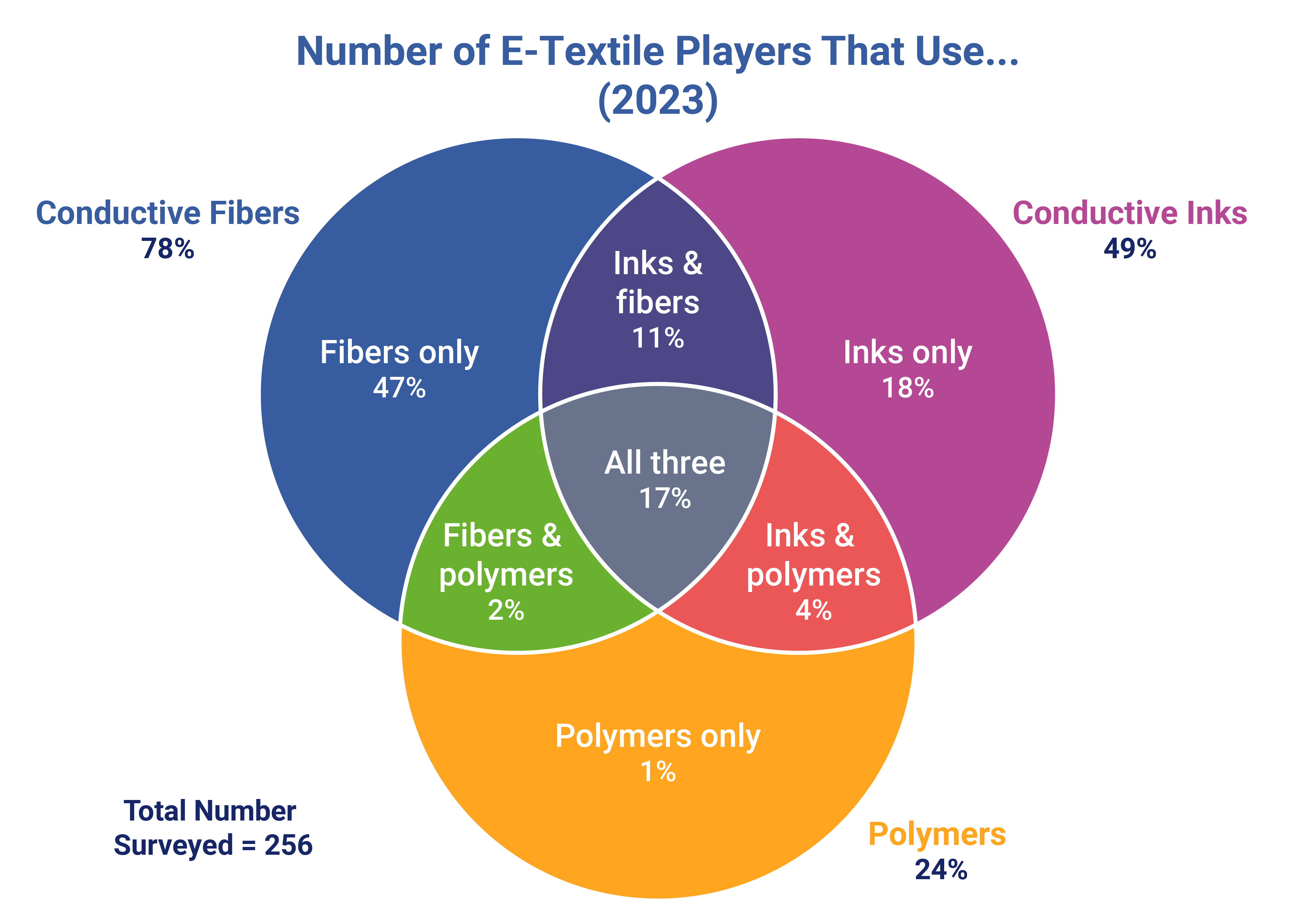 A breakdown of the preferred material choice in e-textile manufacturing across 256 players. Image source: E-Textiles and Smart Clothing Markets 2023-2033: Technologies, Players, and Applications
