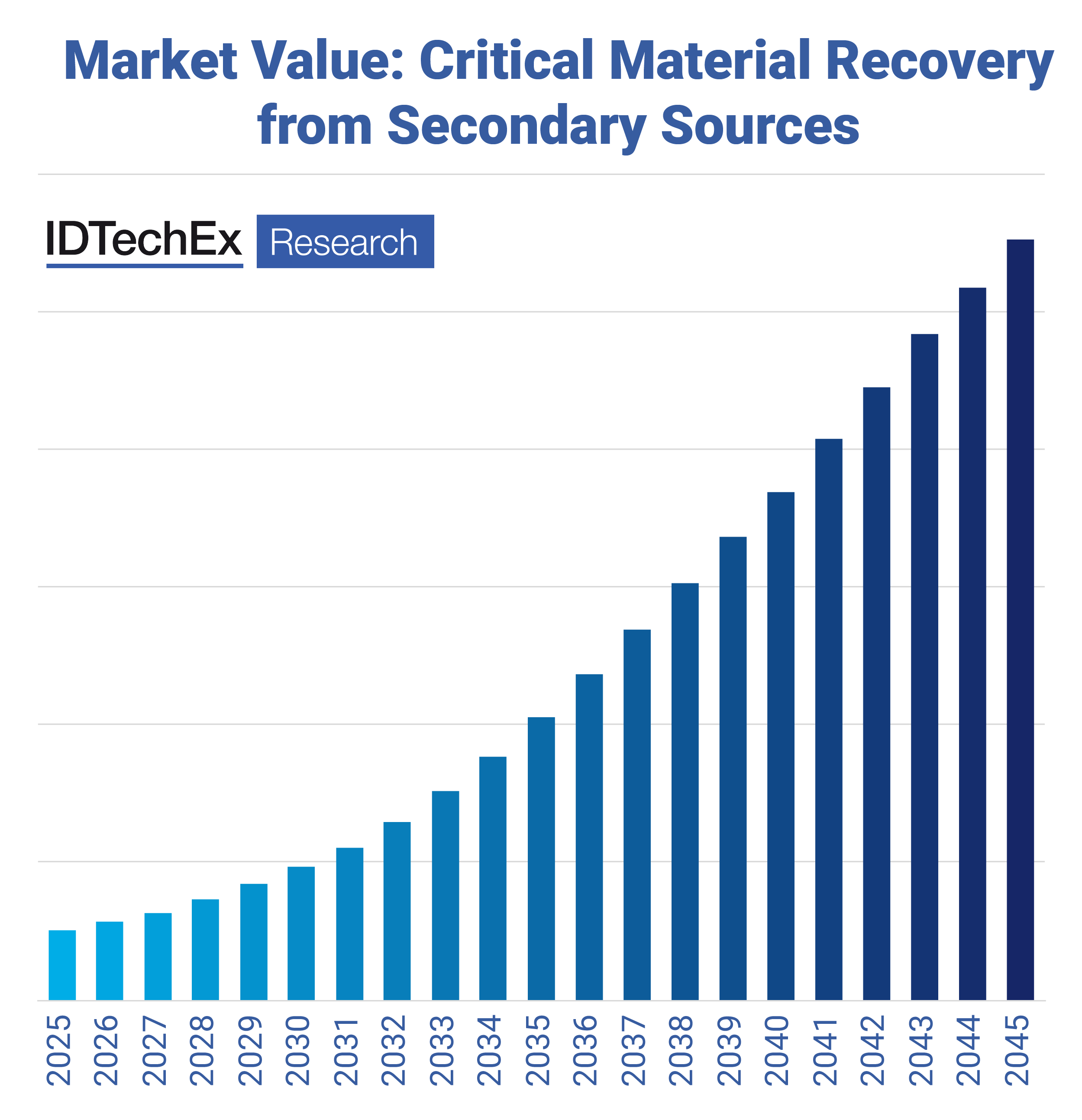 Annual value of critical material recovery market from 2025-2045. Source: IDTechEx.