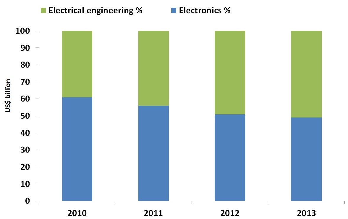 Global supercapacitor market $US billion % when used for electronics vs electrical engineering