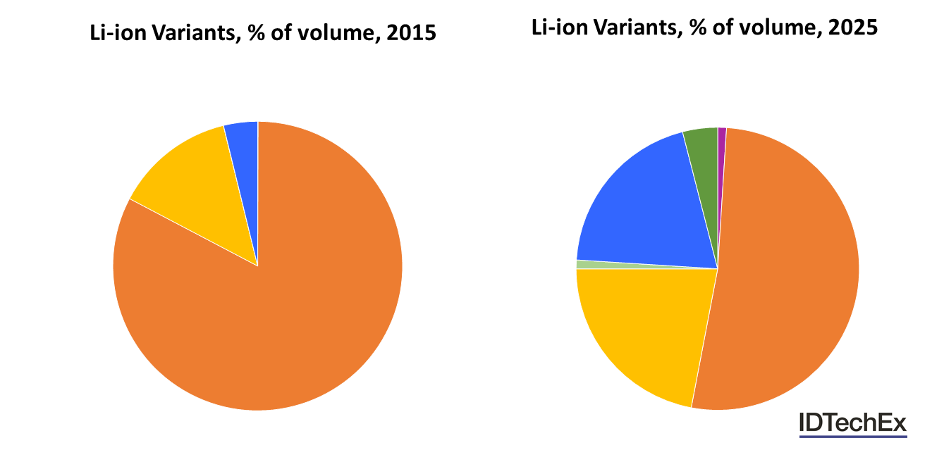 • Battery market of Li-ion variant by % sales volume. Scenario 1: "business-as-usual" forecast