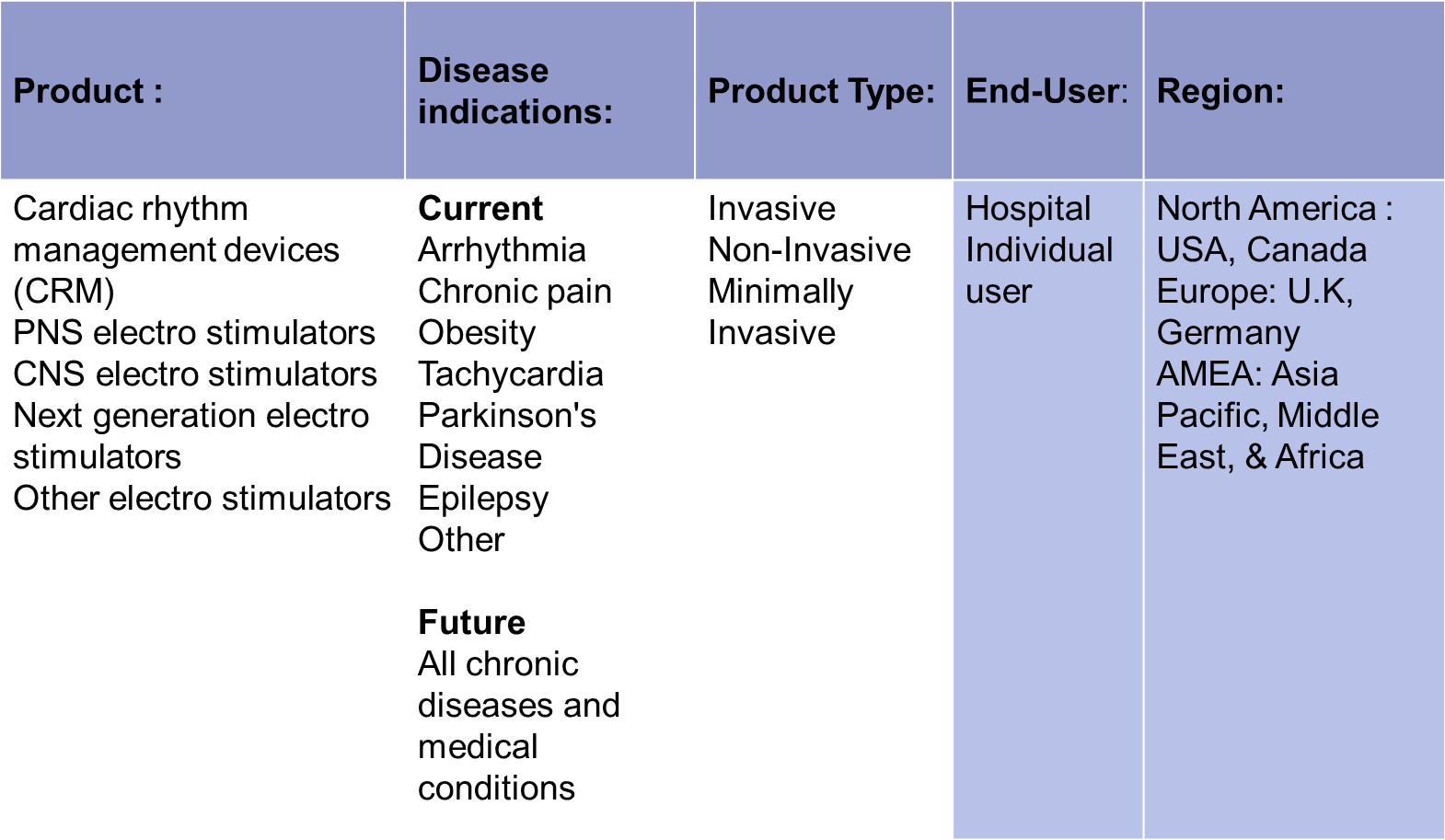 The forecast in this report shows the value of current day bioelectronic medicines assessed by sourcing through relevant company's annual reports. While this report is useful to a wide range of audiences, the report may be most useful to medical device suppliers.