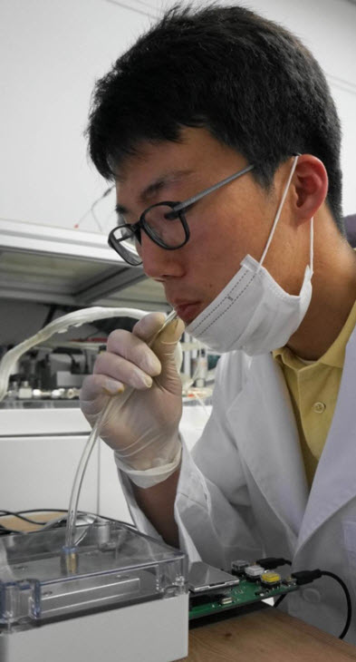 Today's technological innovation enables smartphone users to diagnose serious diseases such as diabetes or lung cancer quickly and effectively by simply breathing into a small gadget, a nanofiber breathing sensor, mounted on the phones.