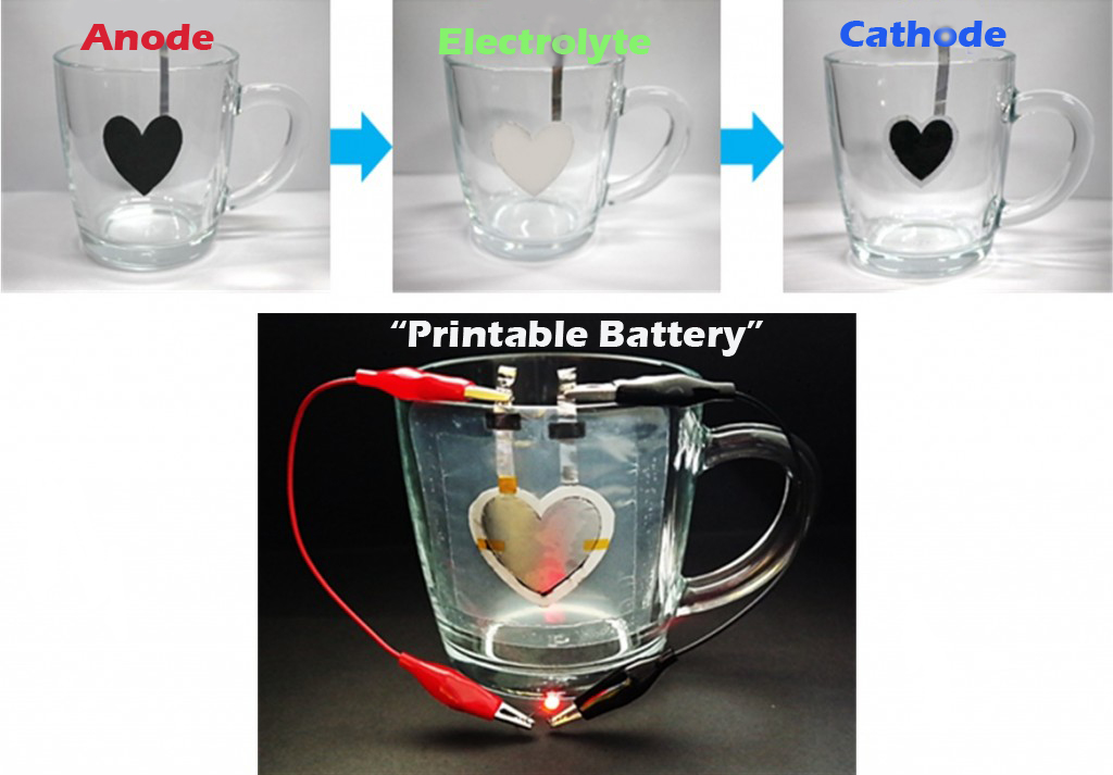 Batteries that could be printed onto almost any surface for flexible power sources with exceptional shape conformability and aesthetic versatility.