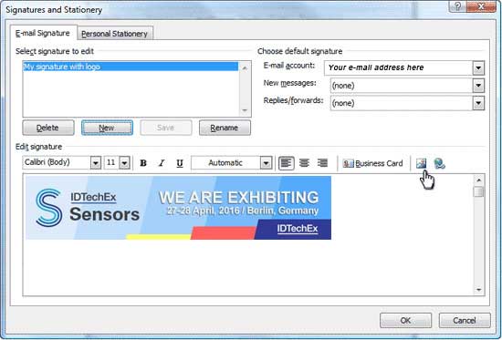 Open new email, the logo should appear in your signature area .