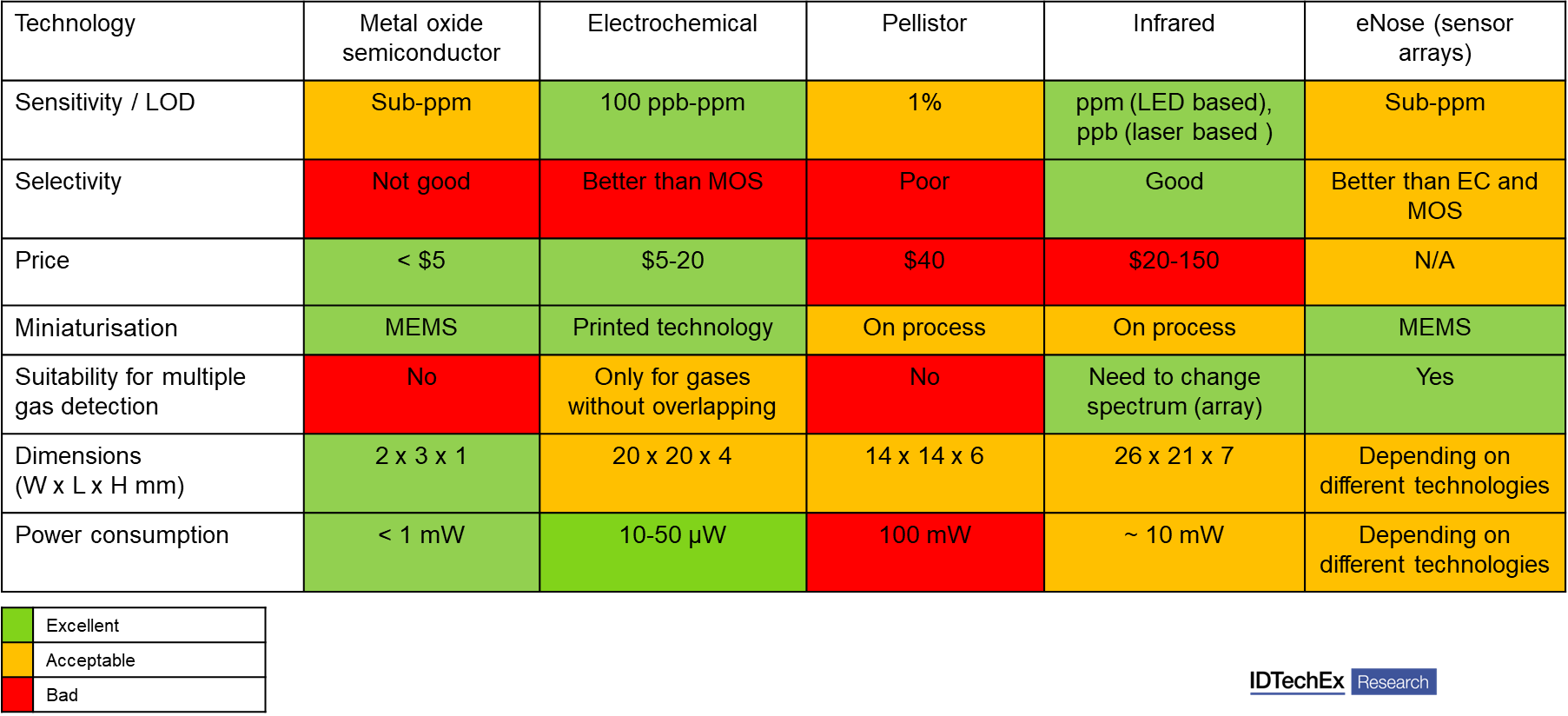 | 1.2. | Comparison of miniaturised sensor technologies |