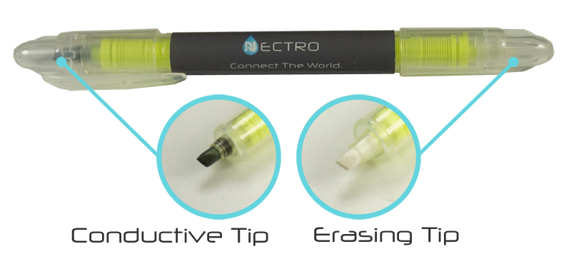 The lines drawn with Nectro are very stable in air even in a humid, hot environment. The conductivity will last lifelong if it is not intentionally damaged.
